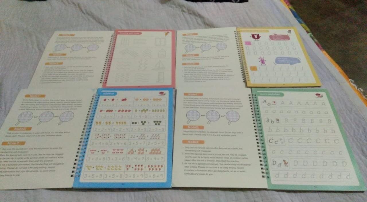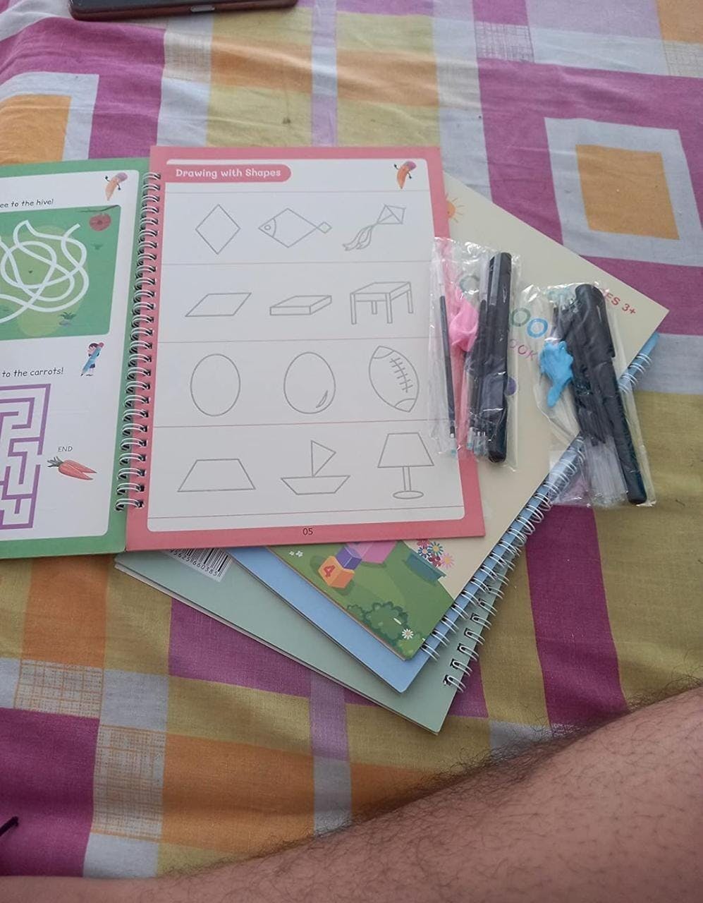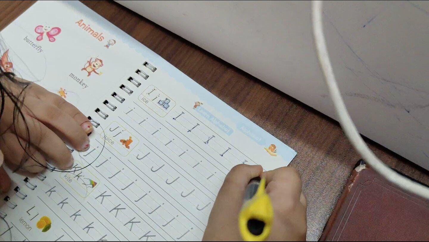 Good Practice Book for Kindergarten kids. Writing with invisible ink pen is tricky and amusement for them.
